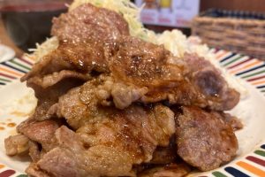 メニューがこちら。名物の餃子は国産上豚ひき肉、キャベツ、ニラ、ニンニク、ショウガが入っています。他の人の注文を聞いていると、餃子を頼む人が多いです。
