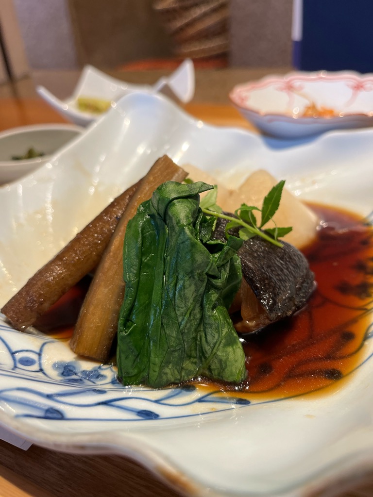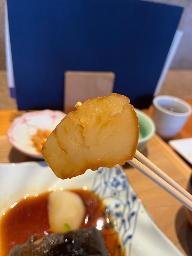 銀鱈は箸でひと口すくい上げた瞬間、箸先に感じる身の柔らかさに心がほどけるようです。口に運べば、出汁の旨味が優雅に広がり、ほどよい甘みと深みが舌の上をゆっくりと滑り落ちていきます。