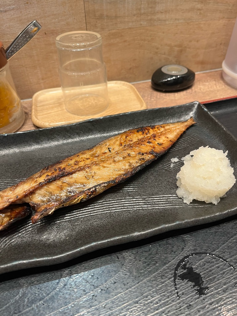 とろサバは、焼き色の美しさに思わず目を奪われます。皮目は香ばしく、ところどころに浮かぶ脂が光を受けてきらりと輝きます。