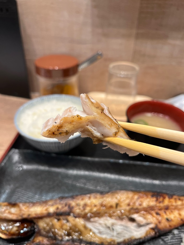 箸を入れた瞬間、身はほろりとほどけ、内部に閉じ込められた熱が静かに逃げていきます。焼きたてならではの温もりが指先に伝わり、音はほとんど立てずに身が割れる様子に、素材の良さがにじみます。