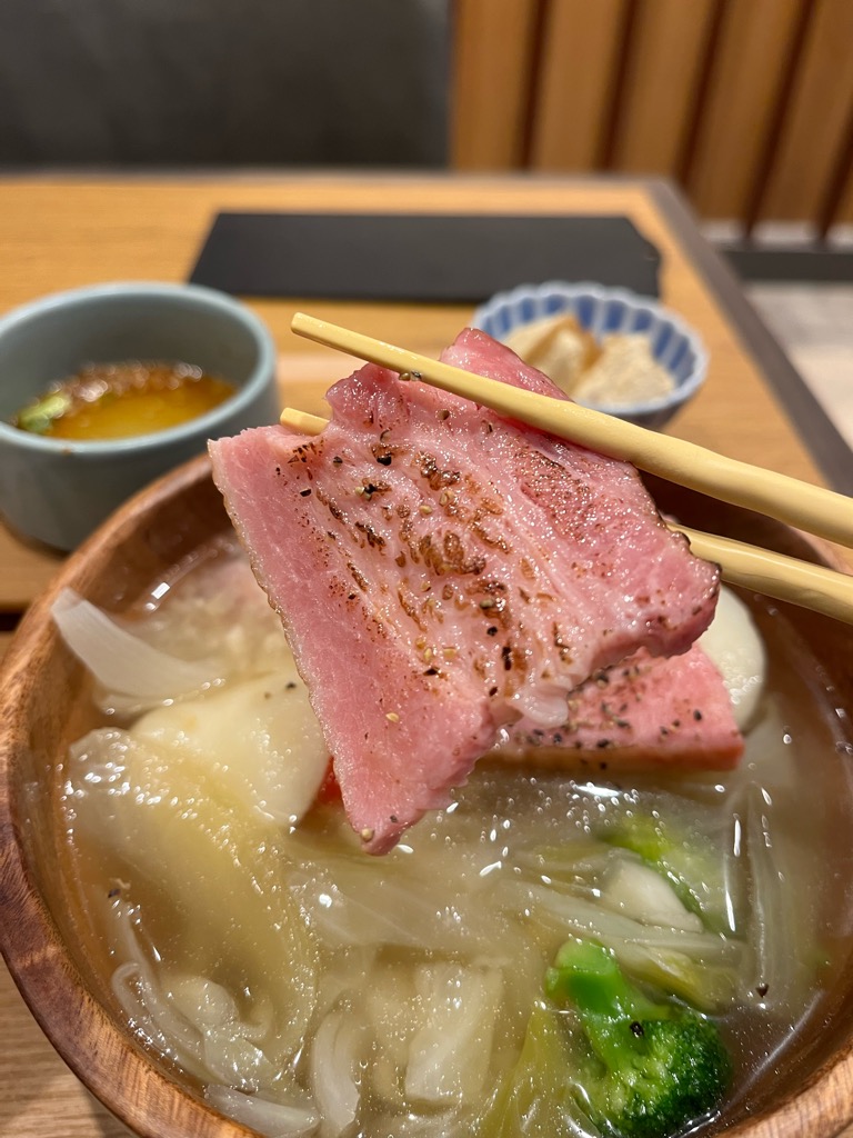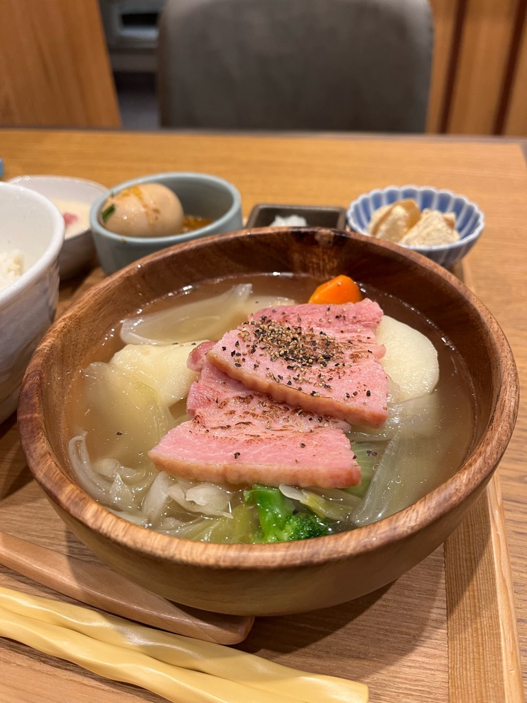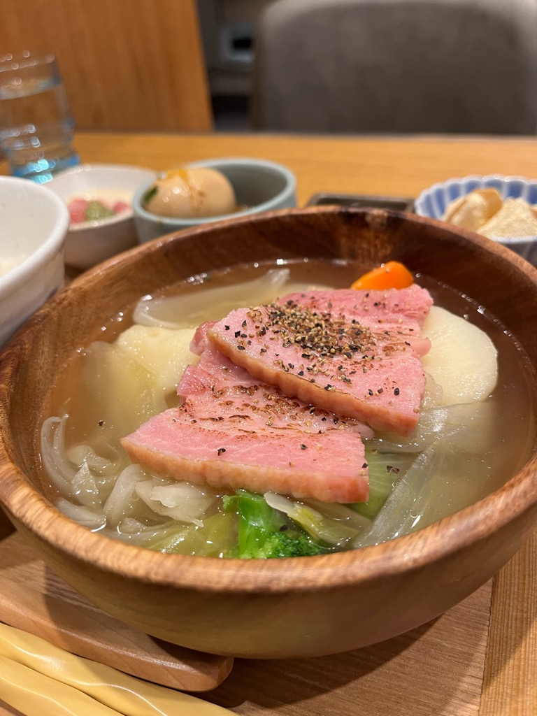 今回は「厚切りベーコンと温野菜のだしポトフ」を注文。