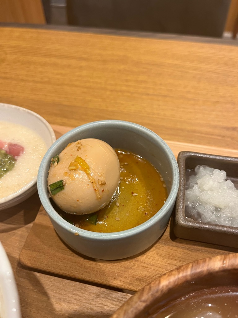 おばんざいは「麻薬玉子」と「山かけマグロ」。