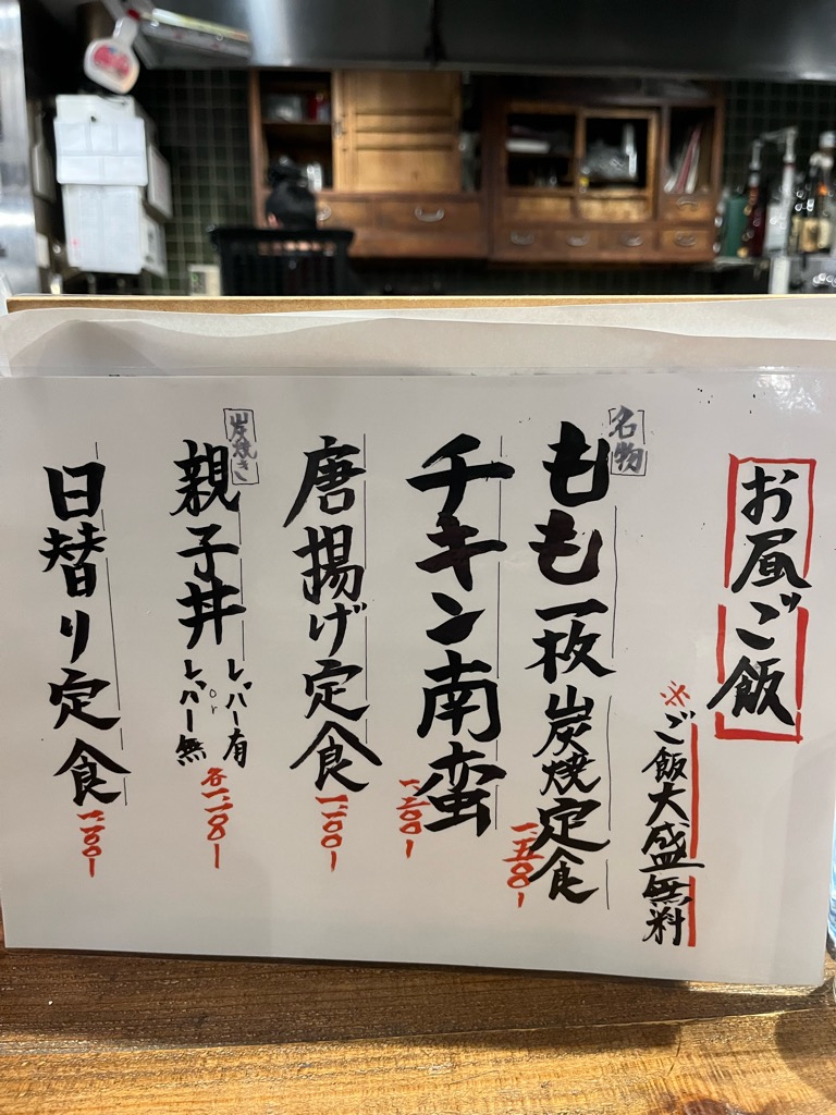 平日の12時30分に訪問。店内は8割ほど埋まっていました。13時を過ぎると、店内は空いていました。もも1枚岩焼き定食が1番人気で、訪問した際には売り切れでした。