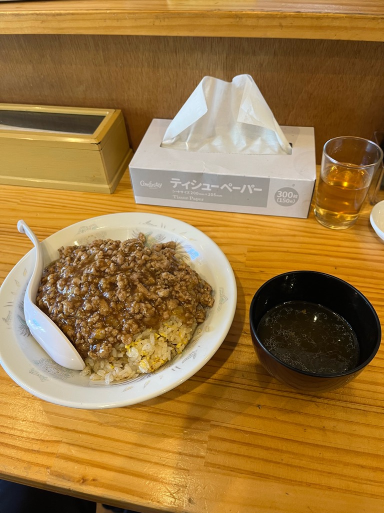 レンゲでひと口すくうと、まず感じるのはチャーハンのやさしい甘み。そこに、ひき肉のうま味がぎゅっと詰まった餡が重なって、じんわり広がる深い味わいになります。