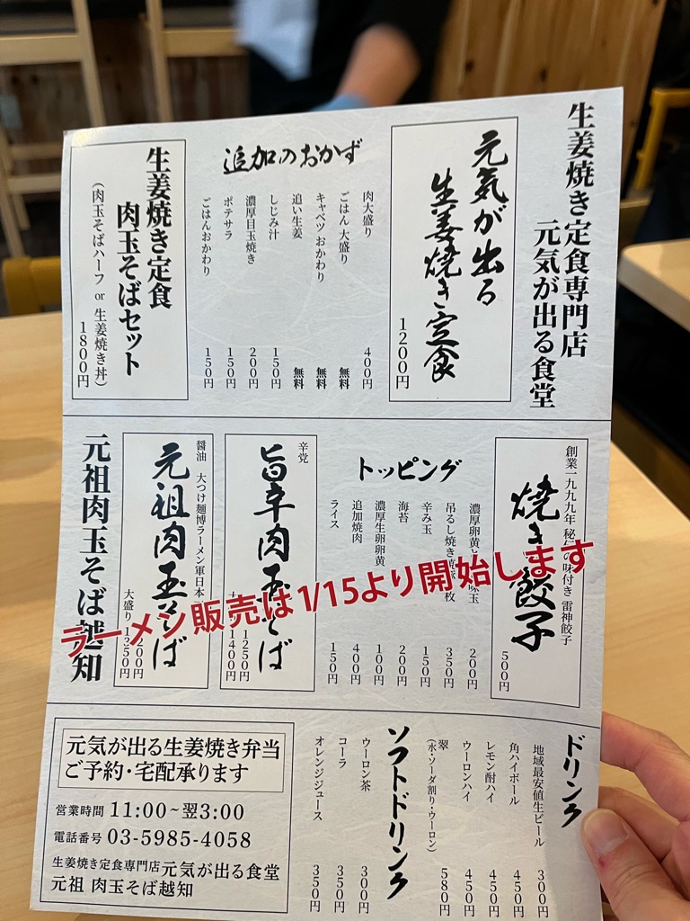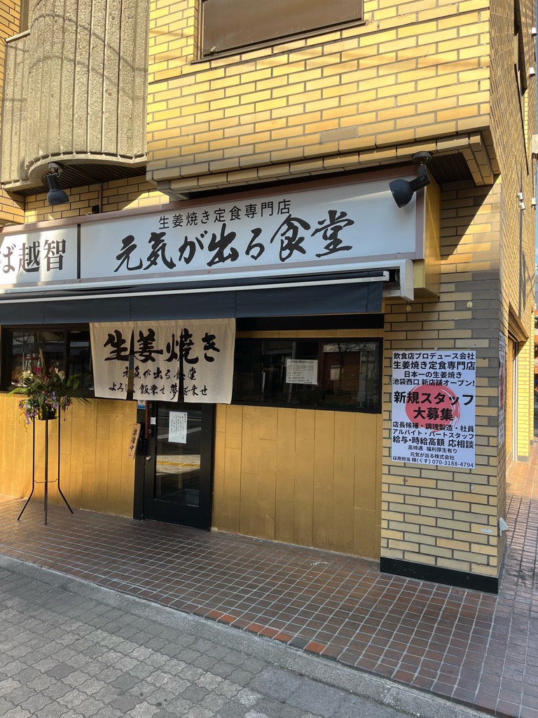 池袋駅から徒歩7分のところにある「生姜焼き定食専門店 元気が出る食堂」を訪問。