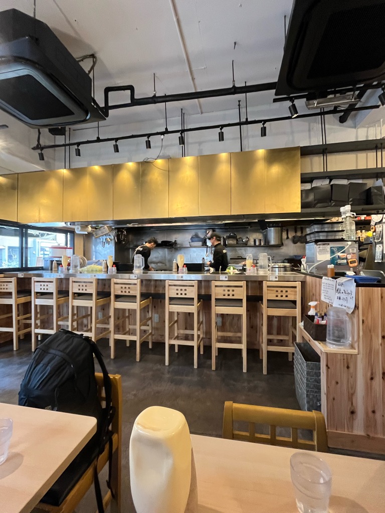 店内はテーブル席とカウンター席があります。2名用のテーブル席が多く、最大4名まで座れるテーブル席が2か所。とはいえ、当日は何とか5名座っている様子が見受けられました。