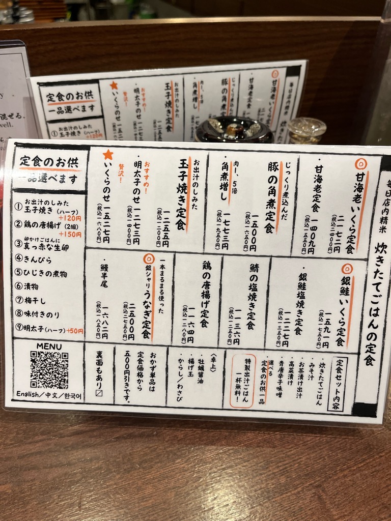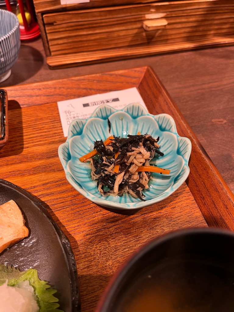 定食のお供が選べるのですが、「ひじき」を選択。まわりは「卵」が多かったです。