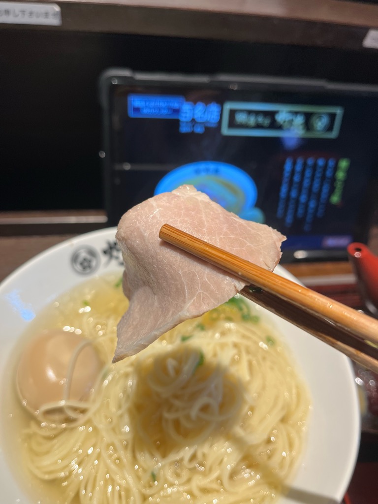 チャーシューはやわらかく、口の中でほろっとほどけます。噛むほどに肉のうまみがじんわり。